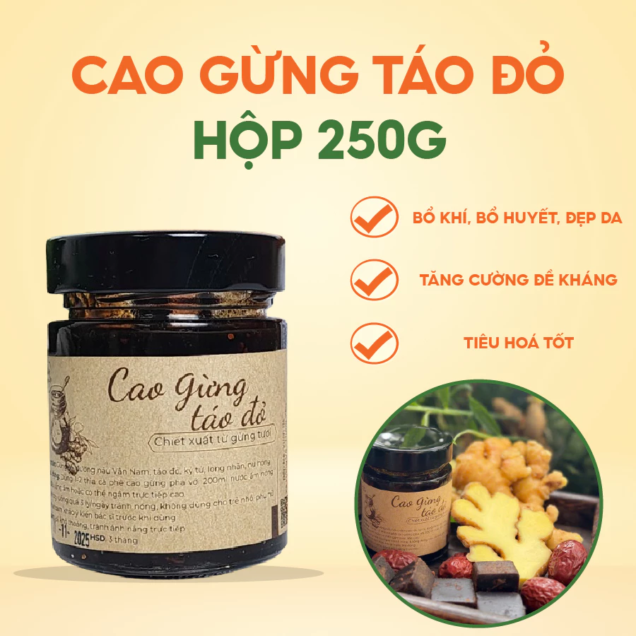 Với những công dụng tuyệt vời từ thiên nhiên, Cao Gừng Táo Đỏ là lựa chọn hoàn hảo để duy trì sức khỏe, làm đẹp và tăng cường năng lượng cho cơ thể.